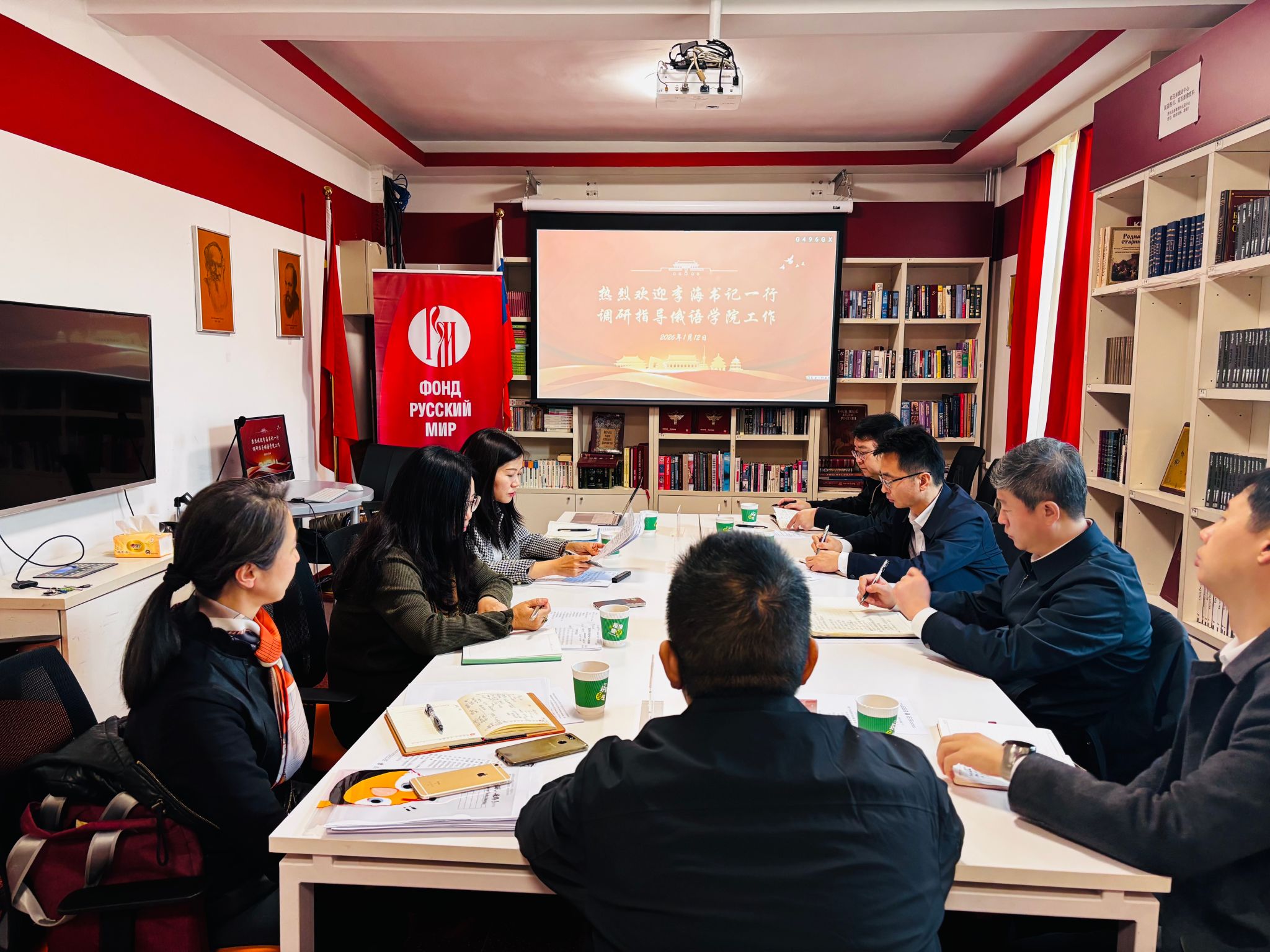 2026年1月12日上午,校党委书记李海,党委副书记苏大鹏一行到俄语学院开展调研。俄语学院班子成员参加调研。